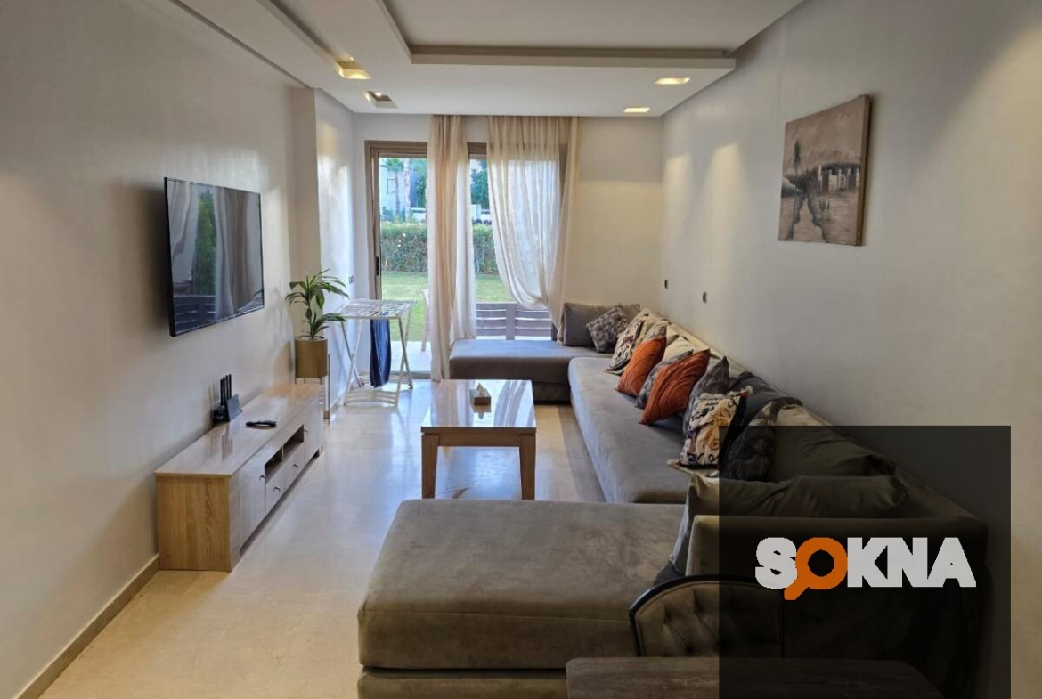 moderne meublé 2 chambres avec placards salon cuisine équipée 2 salles de bains terrasse grande jardin privé climatisation wifi bon voisinage proche de toutes commodités résidence sécurisée avec piscine parking argan jubaea a proximité de oisiria